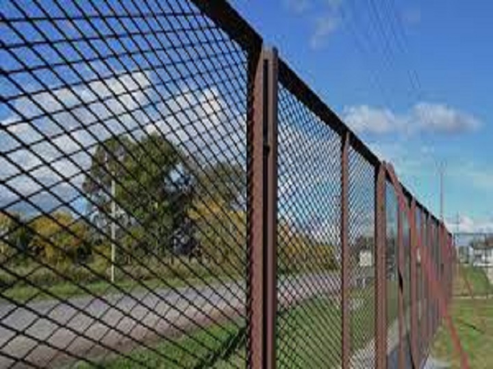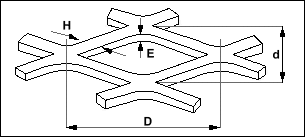 Material formado de una sola pieza, no presenta costura ni soldadura y tiene una serie de aberturas uniformes en forma de rombos o diamantes.